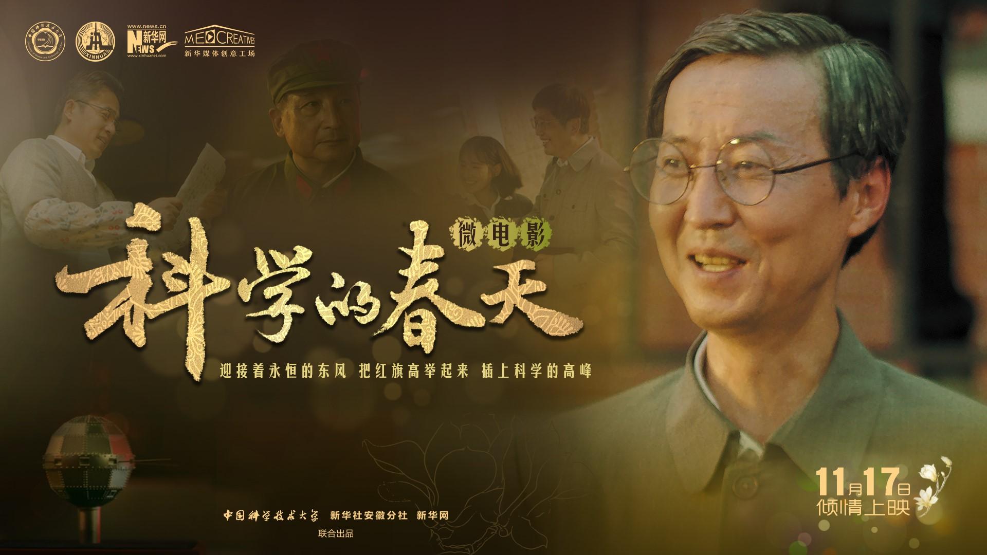 首映式將于 2022年11月17日下午16:00在東區活動中心五樓報告廳舉行,歡迎感興趣的師生到場觀看。首映式結束后,學校新聞網、官方微信和新華網將及時在線發布《科學的春天》微電影線上高清版本,歡迎師生屆時關注收看。