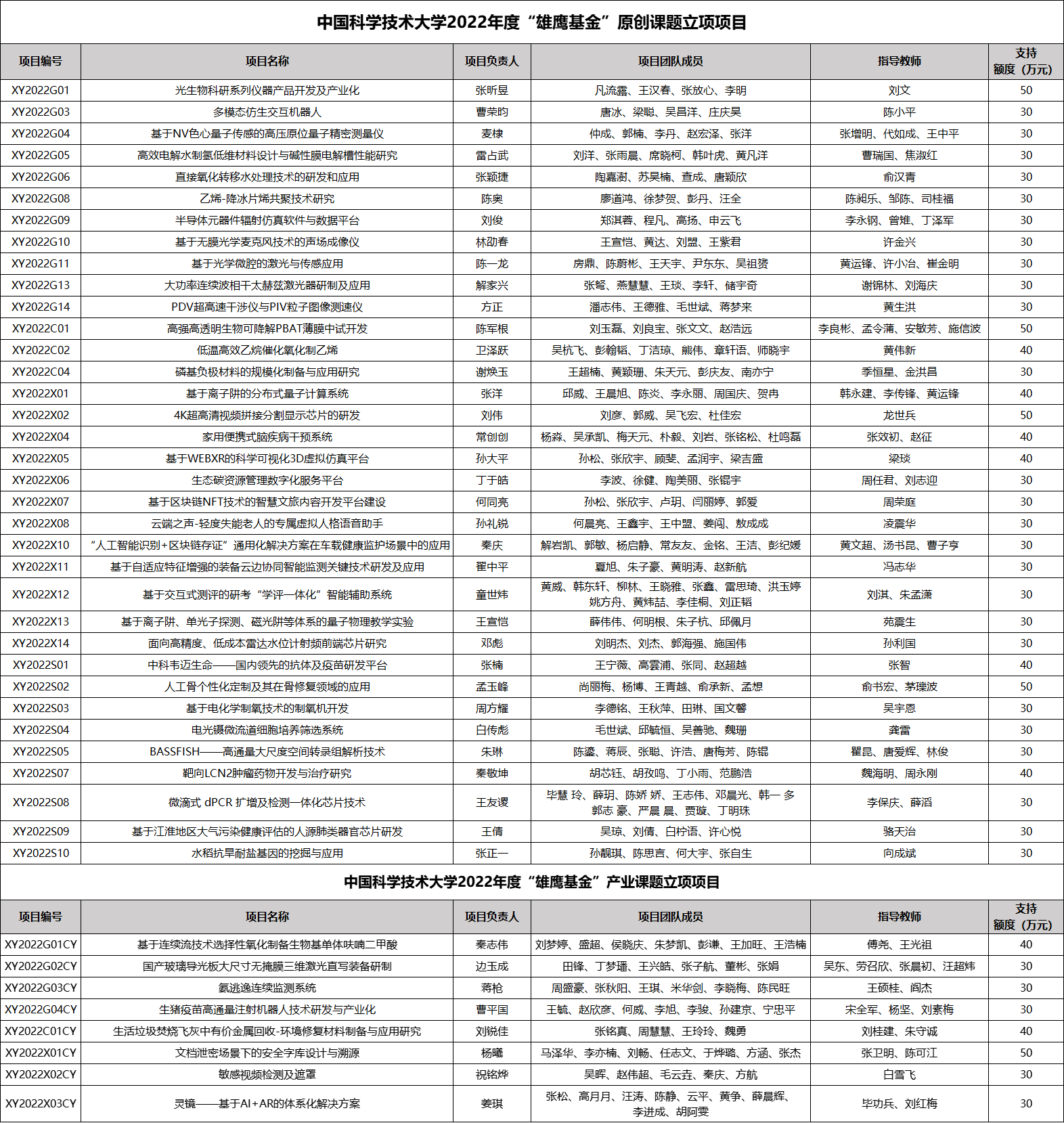 附件2:中國科學技術(shù)大學2022年度“雄鷹基金”立項項目